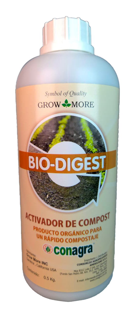 Activador de Compost, contiene una mezcla balanceada de bacterias seleccionadas y enzimas para usar en la digestión y transformación de residuos orgánicos, residuos de cosecha y estiércol de animales.