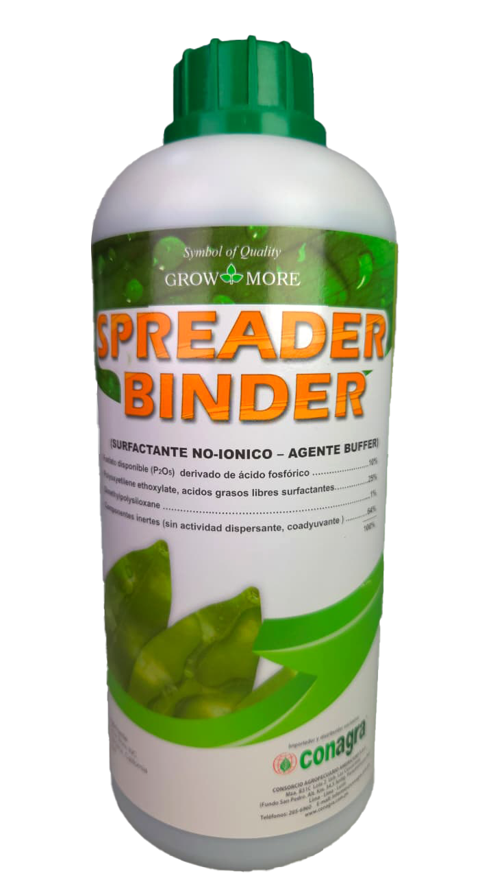 Spreader Binder es una mezcla de surfactantes no-iónicos, que promueven una rápida dispersión, distribución y absorción de los pesticidas y fertilizantes foliares.